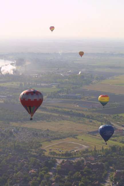 Zentán a csata emlékére rendeznek minden évben, így szeptember elején nagy népünnepélyt. Egy ilyen alkalomra hívott meg Kosiczky András barátom (máig közismert sportember, helyi politikus, az első képen középen piros sapkában) bennünket 2003-ban, mondván, dobjuk fel egy kis ballanos látványossággal az ünnepet. Abban az időben több mint fél tucat ballon tartozott hozzám, s úgy gondoltam, ha már megyünk, nem eggyel, és nem egyedül megyünk. Néhány barátomat is megnyertem, a gondolatnak, így Ormai Jánost is, aki az egyik legtapasztaltabb légjáró, s aki sokat segített a szervezésben. Az időjárással is szerencsénk volt, így az ott töltött napok alatt szinte folyamatosan repültünk, igazi nagy show-t rendeztünk, még versenyt is tartottunk.