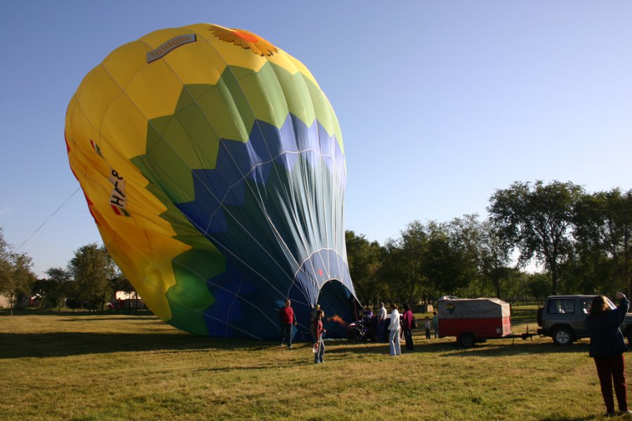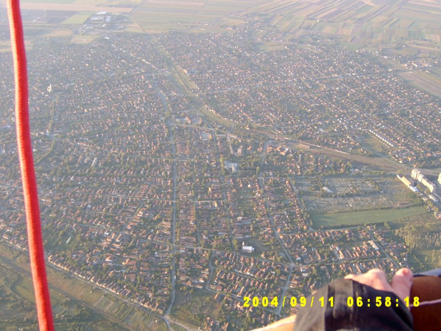 Zentán a csata emlékére rendeznek minden évben, így szeptember elején nagy népünnepélyt. Egy ilyen alkalomra hívott meg Kosiczky András barátom (máig közismert sportember, helyi politikus, az első képen középen piros sapkában) bennünket 2003-ban, mondván, dobjuk fel egy kis ballanos látványossággal az ünnepet. Abban az időben több mint fél tucat ballon tartozott hozzám, s úgy gondoltam, ha már megyünk, nem eggyel, és nem egyedül megyünk. Néhány barátomat is megnyertem, a gondolatnak, így Ormai Jánost is, aki az egyik legtapasztaltabb légjáró, s aki sokat segített a szervezésben. Az időjárással is szerencsénk volt, így az ott töltött napok alatt szinte folyamatosan repültünk, igazi nagy show-t rendeztünk, még versenyt is tartottunk.