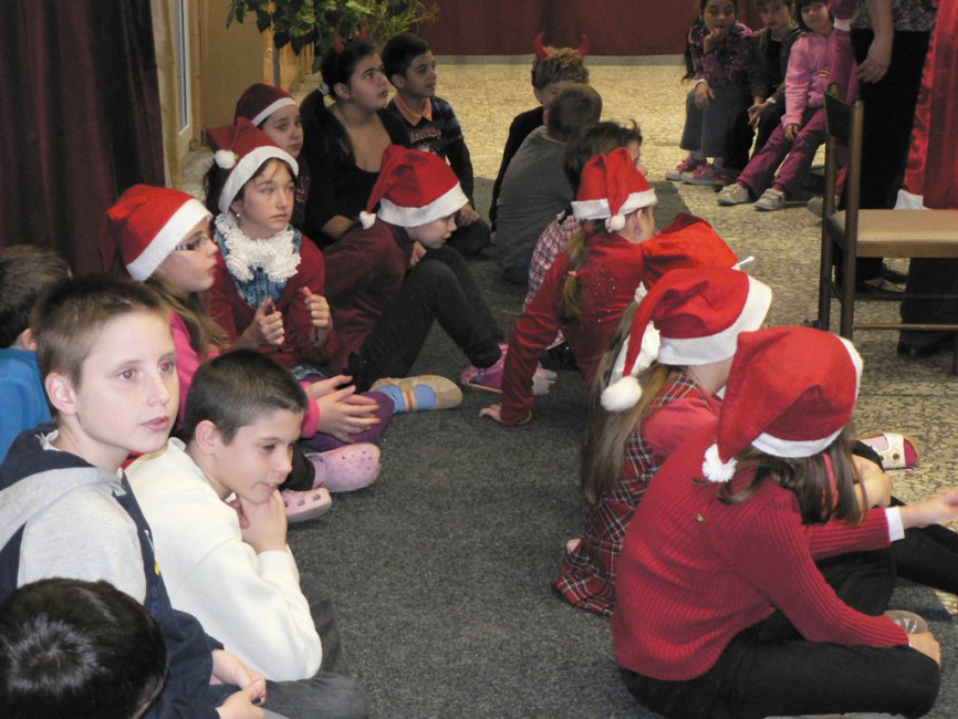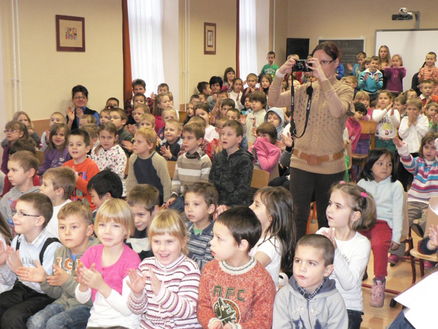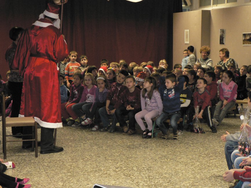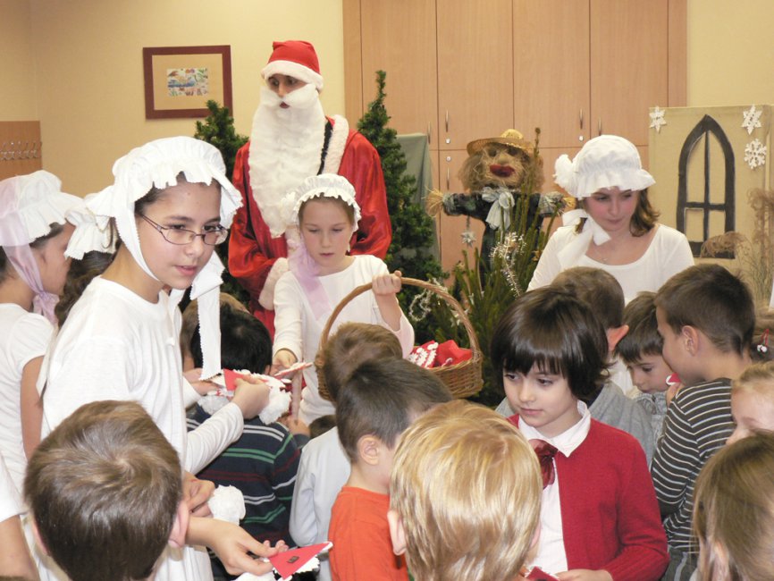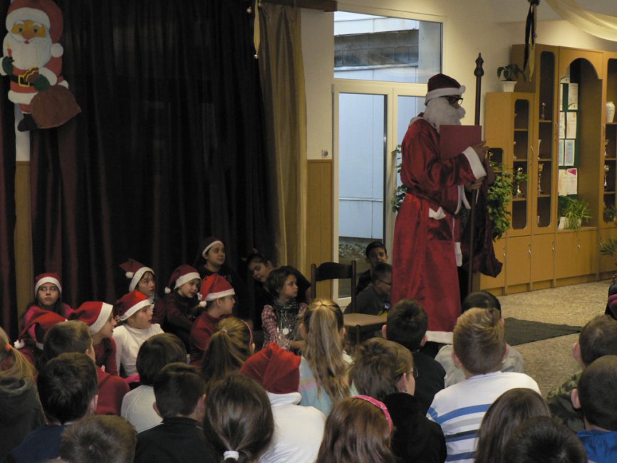 Valóban mindenütt ott volt, akárhová mentünk, mindenütt találkoztunk vele. Legkönnyebb helyzetben talán a rendőrségi mikulás volt, neki ugyanis jutott felvezető autó. Igaz, szüksége is volt rá, mert délelőtt legalább négy iskolában járt, fogytak mis szépen csomagtartójából a Mikulás-csomagok. Mi a Szivárvány Fejlesztő Központban találkoztunk vele, onnan a kórházba sietett a beteg gyermekekhez. Nagy ovációval fogadták a fehér szakállú öregurat a Bólyai és a Péterfy iskolában is. Az alsósok mellett mindkét helyen találkozott a partner óvodákba járó gyerekekkel is.